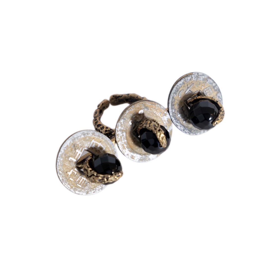 Rings made with old Bali coins, resins, color stones, brass